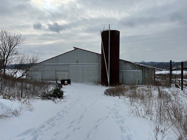 10+ acres featuring substantial farm improvements, including a 156' x 112' pole building, a 54' x 96' pole building, and four grain silos. The property is well suited for agricultural use, equipment storage, or future operational expansion. Conveniently located at the corner of SR 97 and Greenwood Road, just west of Clear Fork High School in Bellville, offering excellent accessibility. Property corners are marked. Includes Parcel #014-34-034-09-006 and a split of Parcel #014-34-034-09-009.