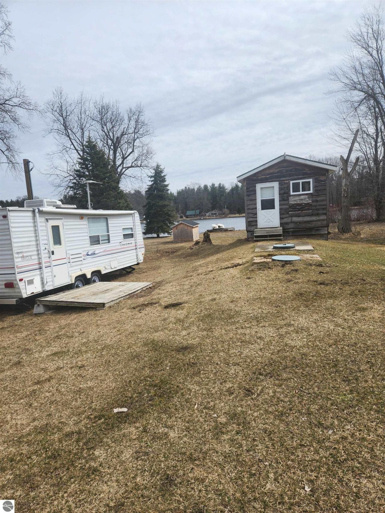 This property consists of 3 lots on Steven Lake with electric, water and septic. Includes a 2005 Coachman travel trailer, shed and the starting of a mini cabin (shell with 1/2 bath started). This property is just waiting for New Owners to enjoy this Summer.
