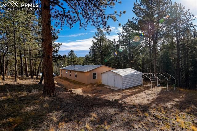 Cozy 3 Bed/2 Bath home on over 4 acres of beautiful pines in Florissant, Colorado! Vaulted ceilings, wood burning fireplace in the living room, eat-in kitchen with center island and large primary bedroom with attached en suite featuring large soaking tub, dual sinks and separate shower. Plenty of storage in the outdoor shed as well. Lots of privacy in the woods, but just a short drive to Hwy 24 to get to Woodland Park or Colorado Springs!