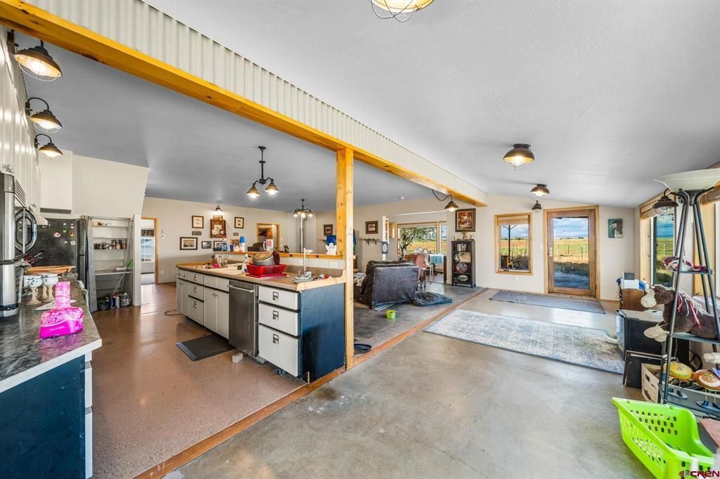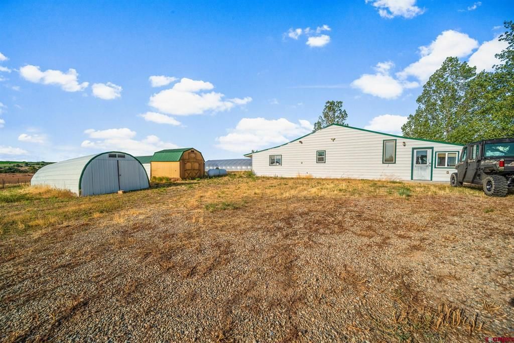 THE PERFECT GATHERING PLACE THAT CAN EASILY HOST 50 PEOPLE. Approximately 2500 square-foot ranch style custom designed home with 3BR3BA on almost 10 acres just North of Cortez Colorado. Surrounded by green alfalfa/grass fields, mountain views and wildlife taking advantage of the free grass and seasonal pond for watering. The great room offers so many family opportunities with the open kitchen, dining, and living room all with in-floor heat. The Great Room is 36' x 26' and the huge office convenient to be able to work from home. Country kitchens are the way to go - open space for many cooks, accented with metal in front of the breakfast bar (sits at least 6) and the adorable antique looking lights and chandeliers. You will absolutely fall in love with the grounds. From inside your home, the South wall is showcased with 5'x7' double pane solid windows grasping every view as well as all that passive solar heat. Property is fully fenced and cross fenced to accent the landscaped back yard with mature trees. Numerous outbuildings are all added attractions. There's also a graveled area that would make a great playground - just add the equipment. The acreage behind the house is an irrigated alfalfa/grass field with the La Plata mountains in the background. The color contrast of green fields to snowcapped mountains is breathtaking. The large 22???x48??? greenhouse and high production garden area with 14 mature fruit trees have filled the pantry with fresh garden produce. Don't worry about staying clean, there's a breezeway as well as a large mud room with wash sink between the greenhouse and your home.