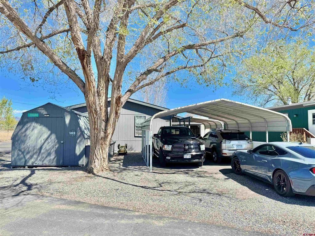 Charming Home in Cherry Acres Mobile Home Park. Manufactured home only. Discover this impeccably maintained, fully remodeled 3-bedroom, 2-bath residence in the Cherry Acres community. The front door faces north, offering unobstructed views of the stunning Grand Mesa with no neighboring homes in sight. Inside, the home boasts an inviting eat-in kitchen and ample storage throughoutâ??many improvements and upgrades. New tile walk-in shower, new flooring and carpet have been installed, and the house has been painted inside and out! Enjoy outdoor living with a spacious front porch, an east-facing side deck, and sun-soaked concrete patios on the south sideâ??perfect for soaking up the winter sun. The beautifully landscaped yard features vibrant flower and vegetable beds. Additional highlights include a covered double carport and a generous 20x10 detached storage shed. This is a must-see property with a current park rate of $577/month