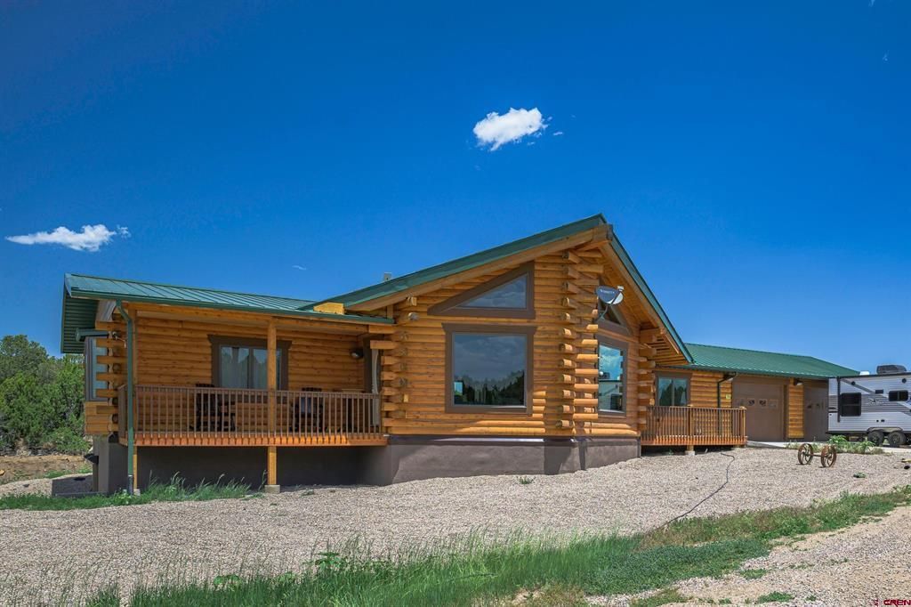 Escape to 35 serene acres with sweeping views of the Spanish Peaks and surrounding mountains. This custom 2 bed, 2 bath log home offers gently rolling meadows, scattered trees, and expansive windows that capture the scenery from nearly every room. Interior highlights include walnut trim, hickory cabinets, a durable metal roof, and a full unfinished walkout basement with a built-in walk-in safe. The property features a fenced garden with water spigot, dog kennel, and three included shipping containers (one 40' and two 20'). RV guests enjoy dedicated septic, water, and power hookups. The well is equipped with a premium three-stage filtration system valued around $100K. Select bedroom furniture and additional furnishings are negotiable, making this private mountain haven ready for its next chapter.
