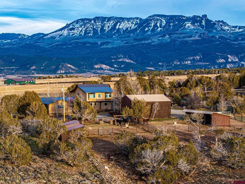 7 Horses Ranch is a rare 71-acre equestrian property outside Crawford that combines luxury living, top-tier horse facilities, and direct access to tens of thousands of acres of BLM land. This isn???t ???nearby public ground??????it???s open-the-gate-and-ride access into quiet canyons, rolling sage, and miles of backcountry that most riders only dream of. The land has the kind of character people look for in Western Colorado, with gentle elevation changes, open meadows, sheltered pockets of cover, and a healthy wildlife presence. Mule deer are year-round residents, and elk migrate through in both fall and winter, often lingering on the ridges and hay fields. Located in GMU 63, the ranch offers over-the-counter elk opportunity and sits in a respected draw unit known for trophy mule deer. At the center of the property sits a 4,076-square-foot custom home built with craftsmanship and durability in mind. Solid knotty alder doors, custom metalwork, high ceilings, exposed beams, and a thoughtful blend of wood and tile flooring give the home a warm, substantial feel. The kitchen is built for real use, featuring riveted stainless-steel countertops, Sub-Zero refrigeration, high-end appliances, an ice maker, and a full butler???s pantry with its own sink and refrigerator. The home offers multiple flex spaces that can serve as a gym, media room, office, game room, or overflow guest quarters, giving it the versatility to fit a wide range of lifestyles. Outdoor living is a standout feature, with two levels of decks overlooking the West Elk Mountains and Needle Rock. The upper deck, accessed from the master suite, includes a private sauna, while a custom spiral staircase leads to the lower deck with a hot tub and kiva fireplace???an ideal place to relax after a long day of riding or watch wildlife move across the property. The landscaped yard stays green with well water, while the home itself is served by a reliable domestic water tap. The equestrian facilities are equally impressive. The heated barn includes five stalls???two of them oversized foaling stalls???along with a hot-and-cold wash bay, feed room with refrigerator and sink, and ample storage. Multiple paddocks with loafing sheds and automatic waterers, a 100' x 300' arena, and several outbuildings keep the operation running smoothly. Approximately 32 acres are irrigated and planted in hay, supported by strong water resources and a layout designed for efficiency. For the rider, the sportsman, or anyone seeking privacy, scenery, and a true Western Colora