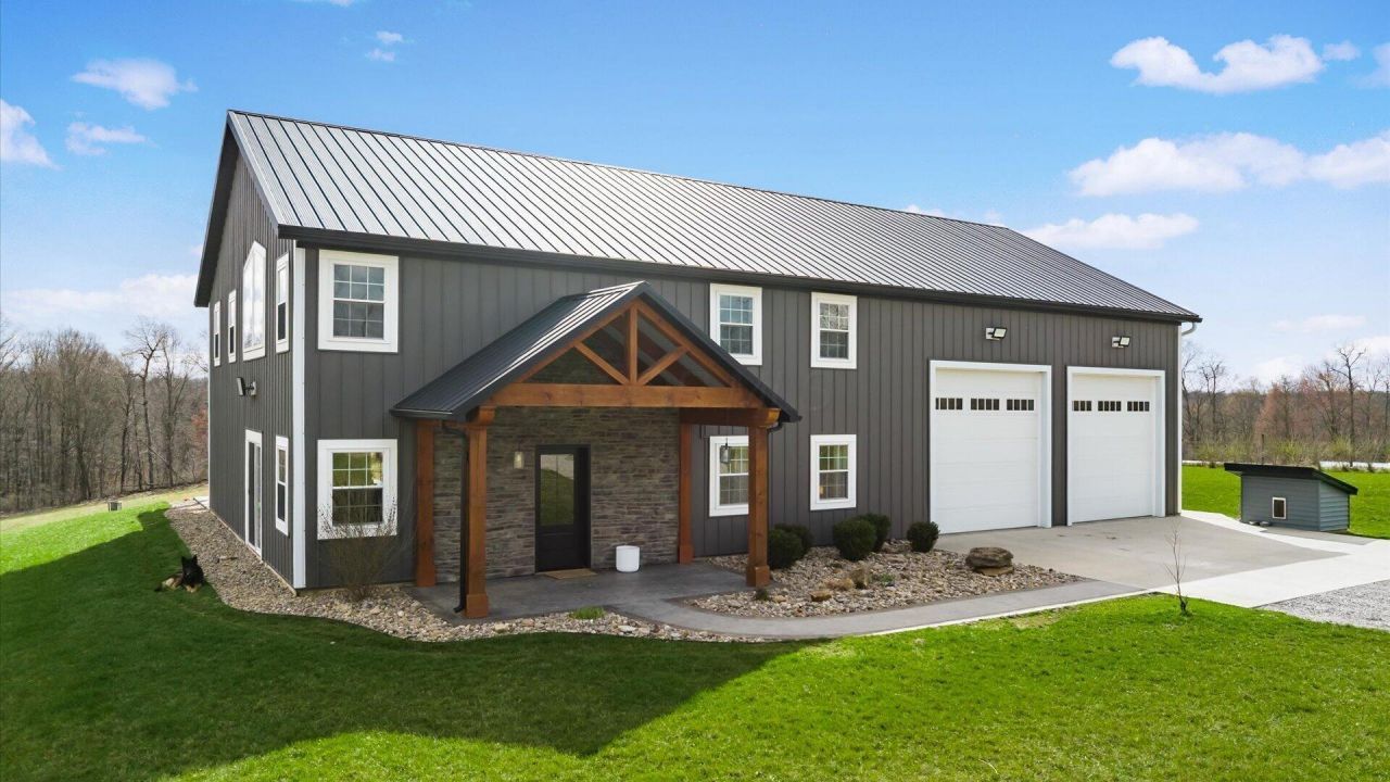 Custom-built 3 bed, 2.5 bath barndominium with 2,464 sq ft of living space on nearly 12 acres in Maysville Schools. Built in 2021, this modern barndo features a stunning 2-story vaulted great room with tongue and groove wood ceilings, radiant heated floors, and first-floor laundry for true single-level living. Kitchen includes concrete countertops and a walk-in pantry. The property also offers a 36x40 heated shop with 12x12 overhead doors, ideal for trucks, equipment, or hobbies. Perfect for buyers seeking acreage, country living, mini farm potential, or a hunting property with shop space and room to roam.