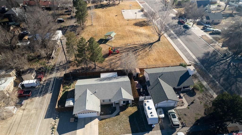 Well-maintained 3 bedroom, 2 bathroom home in a desirable downtown location just blocks from Main Street. Vaulted ceilings create an open, spacious feel in the main living area with solid surface flooring, including tile, throughout the living spaces and soft carpeted bedrooms for comfort. Pellet stove plus forced air heat and central A/C provide efficient year-round climate control. French doors open to a covered back patio ideal for outdoor entertaining. Fully fenced backyard features a sprinkler system, garden space, alley access, and backs to a city park for added privacy and open space. Functional floor plan includes a dedicated laundry room and attached 2-car garage. Move-in ready home offering comfort, convenience, and easy access to shopping, dining, and downtown amenities.
