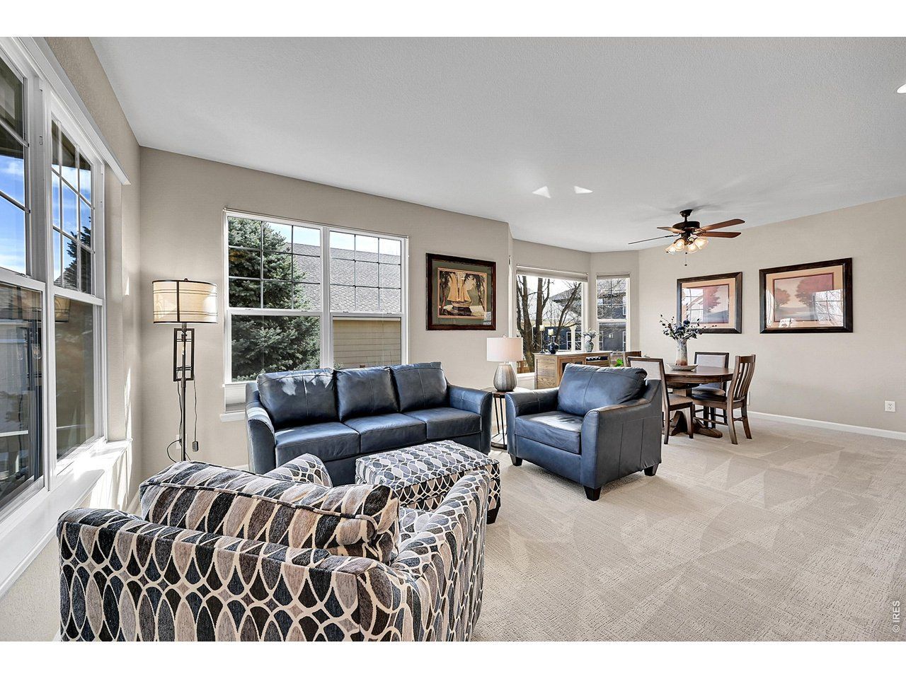 Immaculately maintained home inside and out! Professionally landscaped front and back. Backyard features a covered patio with built-in firepit, gas line for grill, and waterproof outdoor speakers-perfect for entertaining. Formal living and dining rooms plus a spacious loft. Generous secondary bedrooms; secondary bath includes double sinks. Gourmet kitchen with granite slab island, granite counters and backsplash, double ovens, range, and pantry. Inviting family room with stack stone fireplace and surround sound. Large primary suite with plank wood flooring, 5-piece bath, and walk-in closet. Laundry room with extra cabinets and sink. Recent updates include porcelain tile in garage entry, laundry, and half bath, plush new main-level carpet, and 2-year-old Class IV roof, furnace, and A/C. Study/office is actually the Loft.(MLS didn't have a loft category!)