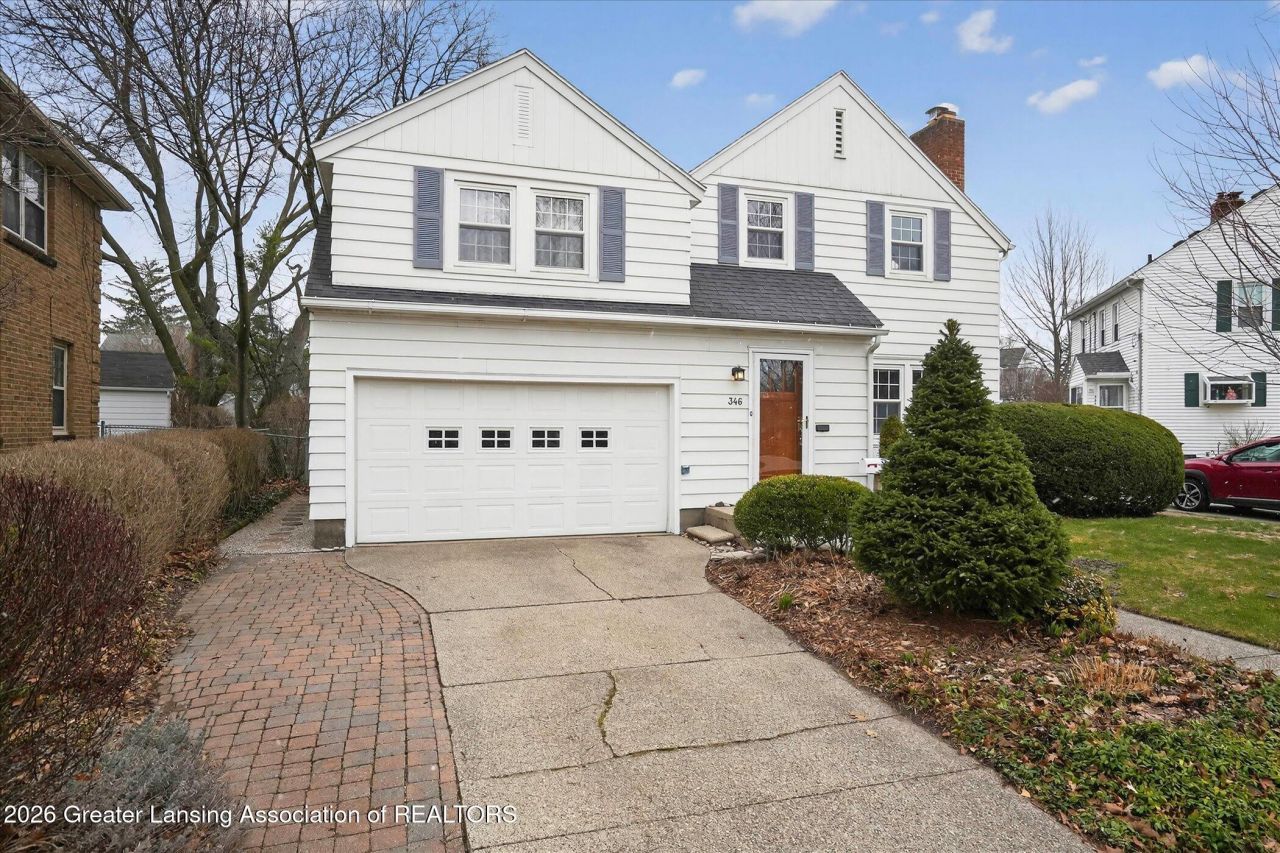 Nestled on storybook-perfect Collingwood Drive, just a leisurely stroll from Michigan State University and directly opposite Bailey Park, this classic East Lansing residence blends timeless charm with thoughtful modern updates. Beyond the welcoming new front door, sunlight dances across original hardwood floors that flow throughout both levels. The graceful living room?anchored by a crisp, brick-surround gas fireplace?effortlessly transitions to the dining area, creating an inviting space for gatherings large or small. Sliding glass doors usher you onto a brand-new deck, ideal for summer barbecues and quiet morning coffee, while the beautifully treed, fully fenced backyard offers rare privacy and a freshly built shed for effortless storage. The kitchen balances vintage character with everyday convenience: ample cabinetry, a cheerful breakfast nook, and a handy pass-through to the dining room keep conversations and culinary creations in easy reach. Upstairs, the serene primary suite boasts double closets, skylight and a cozy electric fireplace for year-round ambiance. Two additional bedrooms?one also with dual closets?provide generous space for family, guests, or a dedicated home office. The period-perfect hall bath showcases lovingly preserved mid-century tile, tastefully refreshed for modern living. Downstairs, a spacious finished basement delivers the flexible bonus room every household craves?ideal as a play space, media lounge, or game room?with abundant unfinished storage and laundry area beyond. Meticulous stewardship shines through a long list of recent upgrades, including: Architectural-shingle roof High-efficiency furnace & central air Exterior paint Water heater Sewer line to the street New deck, backyard shed, and both gas & electric fireplaces Move-in ready, impeccably maintained, and walkable to campus, parks, cafés, and downtown excitement?346 Collingwood Drive is the quintessential East Lansing address to love for years to come.