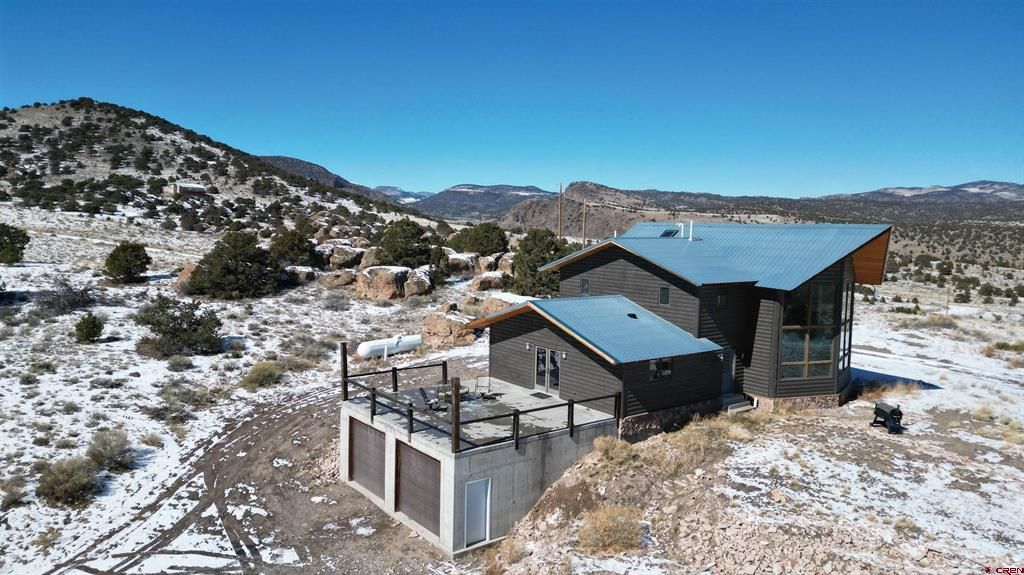 Where the Valley Meets the Sky | 38 Acres | BLM Border | La Garita, Colorado Morning light pours through a wall of east-facing windows as the sun rises over the Sangre de Cristo Mountains, casting golden light across the San Luis Valley below. From this home, you don???t just see the mountains ??? you live inside the view. Set on 38 private acres in the La Garita area of Del Norte and bordering BLM land, this newly renovated 4 bedroom, 2.5 bath home offers 2,200+ square feet of bright, open living space surrounded by towering boulders and dramatic rock formations that feel sculpted by time itself. Step outside and you are immediately immersed in the landscape. Massive stone outcroppings create natural pathways for hiking and exploring. The formations are ideal for bouldering ??? a style of rock climbing done on shorter rock faces without ropes, relying on strength, balance, and problem-solving. It is adventure right out your back door, with the privacy and quiet that only acreage and public land borders can provide. Inside, the home is filled with light and warmth. Vaulted tongue and groove wood ceilings and expansive windows frame the valley like living artwork. Log siding details create a true mountain cabin aesthetic while maintaining the strength and durability of steel framing and concrete construction. The kitchen is built for gathering. A large granite island with stone base detail anchors the room, complemented by a gas cooktop, commercial-style vent hood, stainless appliances, soft-close cabinetry, and real wood flooring. French doors open to a spacious concrete patio where evenings are spent grilling, entertaining, and watching the sun set over the San Juan Mountains to the west. The main-level bath offers a spa-like feel with a freestanding soaking tub, glass walk-in shower, marble-style vanity, and warm wood ceiling accents. Hand-textured walls and thoughtful updates throughout give the home a refined yet comfortable mountain character. Upstairs, the primary suite captures sweeping valley views and features a private en suite bath and walk-in closet. An additional bedroom, half bath, and secondary family room provide flexible living space for guests, hobbies, or a home office. Underneath the home is an approximately 2,000 square foot garage ??? large enough for multiple vehicles, ATVs, side-by-sides, projects, workshop space, and extensive storage. The home is exceptionally solid, built with steel framing and concrete construction and topped with a 50-year metal roof, offering long-ter