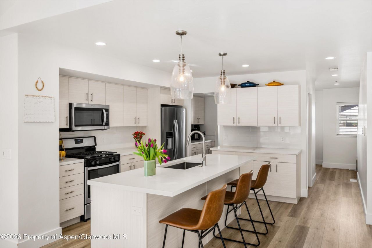 Discover elevated modern mountain living at its finest in this stunning Solstice townhome in Glenwood Springs. This thoughtfully crafted 3-bedroom, 3.5 bathroom home blends contemporary style with effortless comfort, featuring a bright, open-concept layout that effortlessly connects the gourmet kitchen and expansive living areas, perfect for relaxed daily life or seamless entertaining. High-efficiency appliances, central air conditioning, and sophisticated modern finishes elevate every detail throughout the home. Step out from the living area onto your private deck, an ideal spot to savor Colorado's fresh air and scenic surroundings, including view of Sopris. Upstairs, a generous bedroom awaits, highlighted by a luxurious primary suite complete with an oversized walk-in closet for ample storage. With its sleek design and prime Glenwood Springs location, this Solstice townhome delivers the perfect balance of modern sophistication and easy access to mountain adventures, your ideal opportunity to embrace refined, low-maintenance living in one of Colorado's most desirable settings.