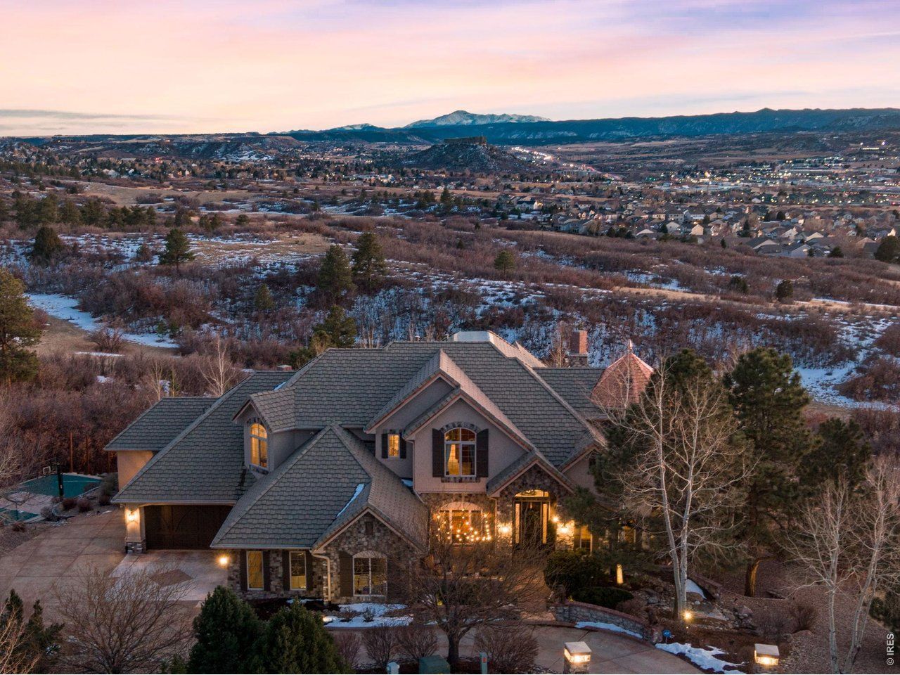 Location Location Location. 4433 Tierra Alta Drive is nestled in an upscale residential area of Castle Rock w/ quick access to downtown amenities, Interstate 25, shopping, dining, parks, & trails while maintaining privacy & scenic mountain views. CUSTOM BUILT IN 2006. ENGINEERED & POSITIONED W/ SOUTHERN UNOBSTRUCTED VIEWS OF CASTLE ROCK MOUNTAIN. A1 ZONING. NO METRO TAX. LOW HOA. Enter the grand foyer featuring hickory hardwood floors, new carpet, custom hand-trowel drywall finishes, rounded corners, solid alder doors, knotty alder trim, and Milgard windows showcasing quality craftsmanship throughout. Elegant formal dining and piano rooms create welcoming gathering spaces while French doors lead to a private office w/ gas fireplace. The breathtaking great room features soaring 20' ceilings, a granite fireplace, and walls of windows capturing views of Castle Rock Mountain & Pikes Peak. The gourmet kitchen includes a butler's pantry, hidden walk-in pantry, large island w/ breakfast bar, granite countertops, tile backsplash, abundant cabinetry, and premium stainless appliances including a six-burner gas range and double ovens. The luxurious primary suite offers vaulted ceilings, a two-way fireplace, spiral staircase to the gym, spa bath w/ jetted tub, dual vanities, walk-in shower, and expansive closet. Upstairs bedrooms feature walk-in closets and private baths. The walk-out basement offers 10' ceilings, theater room, billiard area, family room w/ stone fireplace, wet bar, wine cellar, guest suites, and steam shower. The 1,431 sq ft four-car garage features epoxy floors and ample storage. Situated on one acre backing to open space, the outdoor setting includes a Trex deck w/ built-in BBQ, stamped patios, pickleball/basketball court, gas firepit, and tranquil water features for exceptional Colorado living. E-mail brokers today for a full list of features, floor plan, or to schedule your private tour!
