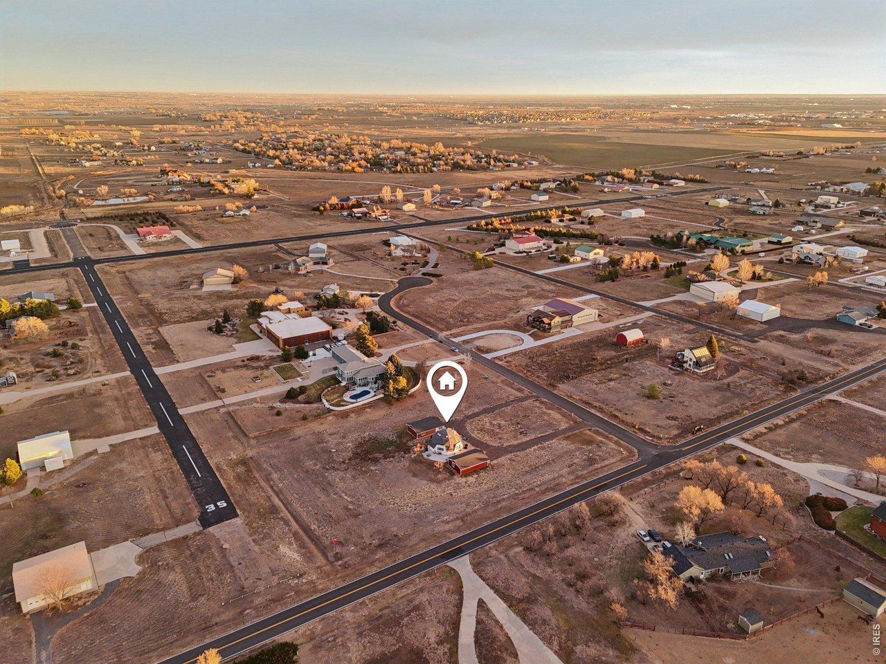 Set within the exclusive Parkland Estates Airpark, this upgraded 2 story offers a true fly-in, fly-out Colorado lifestyle. Positioned on 2.43 acres and backs directly to the north-south runway with taxiway easements, providing excellent runway access and easy connectivity to the community's main runway. Level area offers an ideal site to build a private hangar, with plans and a visual mock-up available. Welcoming front porch opens to a dramatic great room with soaring vaulted ceilings, skylights and an open floorplan filled with natural light. Double pane windows frame sweeping mountain views, while an electric fireplace anchors the living space. Dining area flows seamlessly from the living room, perfect for everyday living and entertaining. Efficient galley style kitchen features tile flooring and a functional layout. Private main level primary suite includes a full en suite bath, patio access and separation from the 2 upper level bedrooms, which share a full bath. A convenient main level laundry room adds extra storage. Outdoors, the expansive wrap-around patio invites relaxation with a gas firepit, built-in seating; ideal for enjoying sunset mountain views. 2 oversized detached garages, each 864 sq ft with electricity and exterior access, offer exceptional space for vehicles, storage and hobbies. The level corner lot on a quiet cul-de-sac provides privacy, room to roam, and the rare opportunity to build or lease a hangar. Aviation enthusiasts will appreciate direct taxiway access within this private, resident-oriented airpark (7CO0). Features dual paved runways, a 4,200' primary runway and a 2,000' paved crosswind runway backs to property, plus pilot-operated lighting and an on-site fuel farm. Unique fly-in community enjoys over 300 days of flyable weather each year. Conveniently located about 30 min. from Denver and DIA and just 10 miles east of Boulder, with the nearby Town of Erie offering shops, dining, breweries, parks & seasonal events. See Virtual Tour.