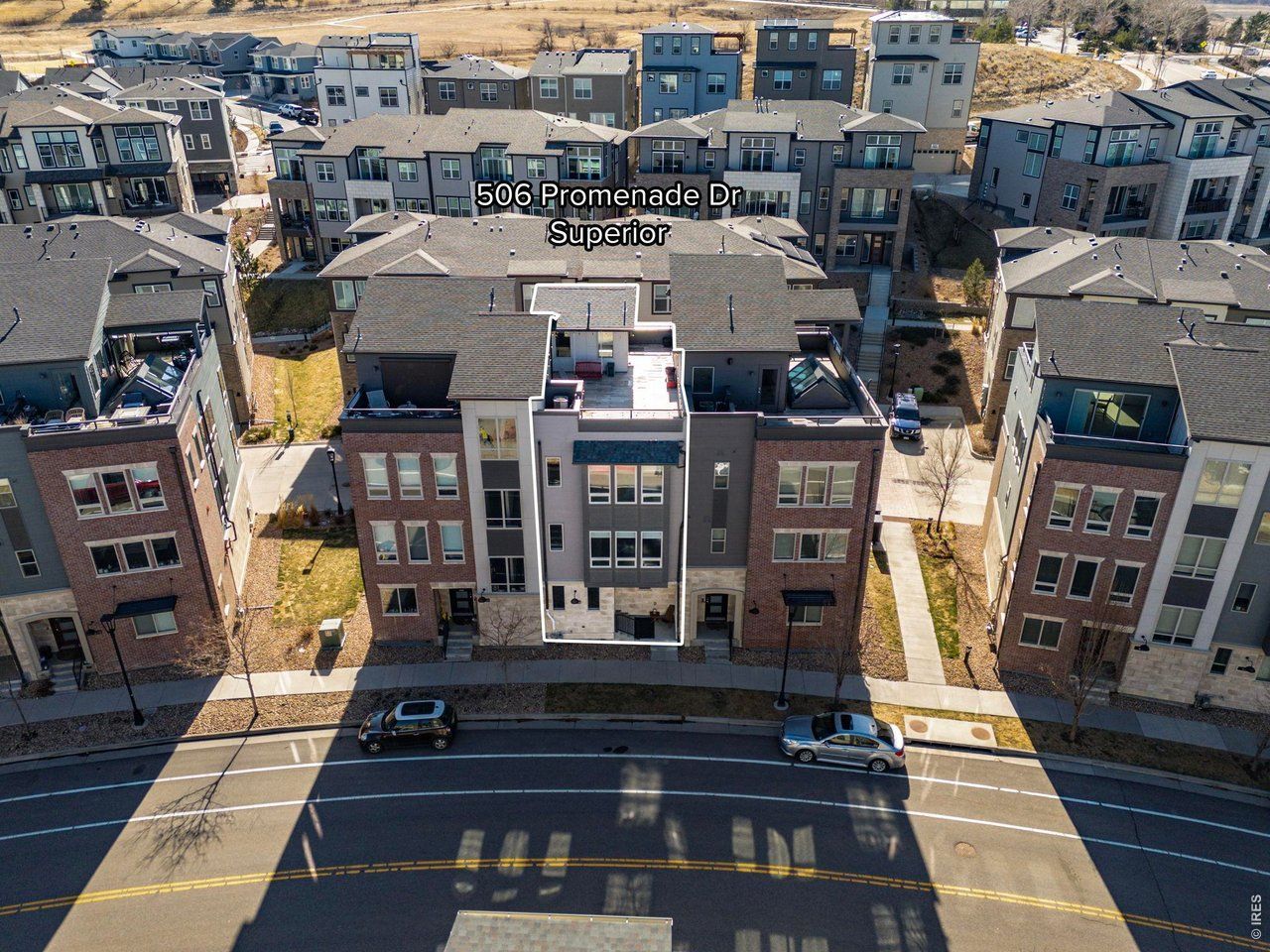 Elevated urban living awaits in this immaculate 4-level townhome in the highly desirable Superior community-ideally located between Boulder and Denver. This thoughtfully designed residence features a spectacular rooftop deck capturing abundant sunshine and sweeping views of the iconic Flatirons and distant snow-capped peaks. Situated in the coveted Sport Stable neighborhood, residents enjoy immediate access to a premier 186,000 SF athletic and lifestyle complex with world-class facilities for hockey, soccer, basketball, volleyball and golf. Built in 2018 and nested within a well-established, pet-friendly community, this home offers low-maintenance living with easy access to vibrant downtown areas, scenic Boulder County Open Space trails and a seamless commute via Highway 36. Enhanced with custom upgrades throughout, the home blends modern design with warm, distinctive finishes. The entry level welcomes you from the attached garage or charming front porch into a beautifully tiled foyer with a generous laundry area, built-in bench and abundant storage. The main level impresses with soaring 9-foot ceilings and an open-concept layout. The gourmet kitchen features quartz countertops, SS appliances and refined finishes, flowing seamlessly into the living and dining areas highlighted by a stylish brick accent wall that adds texture and warmth. A private balcony and powder bath round out this level. Upstairs, the expansive primary suite offers a true retreat with an oversized luxury bath and spacious walk-in closet. A guest bedroom plus a full bath complete this floor. The top level includes a versatile flex space-ideal for a home office or fitness area-leading to the exceptional rooftop deck, thoughtfully upgraded with a dedicated gas line, GFCI outlets and a hose bib, creating the ultimate outdoor oasis for entertaining or relaxing under Colorado's breathtaking sunsets. Redefine your lifestyle to experience the fusion of work, sanctuary and play in this ideal location.