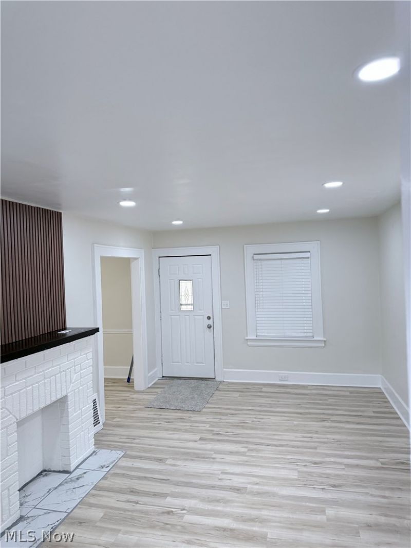 Welcome to 569 Barwell St., Akron. Freshly painted throughout, this home has been updated and remodeled. The Living Room has a Fireplace with a wood enhanced backing. The new flooring makes this room look warm and spacious. The Formal Dining Room has recess lighting that provides a sleek modern look that enhances the overall visual space. The open floor plan leads into the newly remodeled kitchen. The kitchen leads to a freshly painted outside deck with a relaxing view. Outside there is also a rebuilt front porch. Upstairs there are three newly carpeted, very cozy bedrooms. The remodeled full bath located on this floor is amazing. The basement recreation room has new carpet and a new half bathroom. The laundry room is also on this floor. Welcome home!