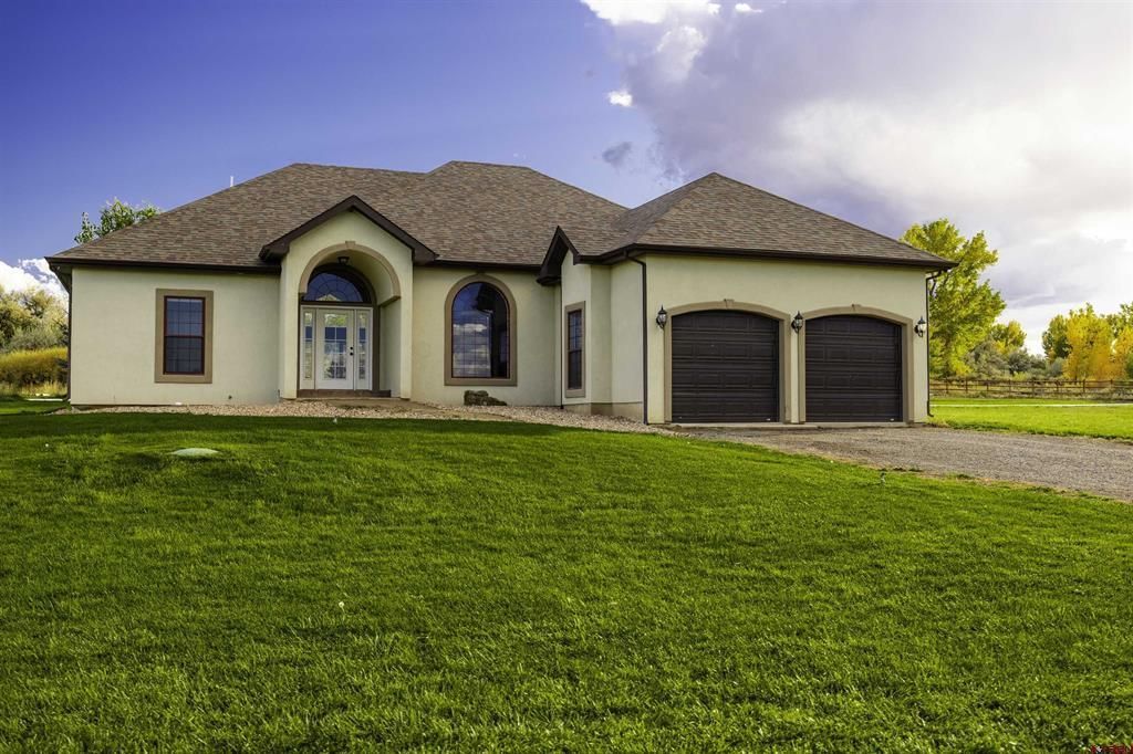Spectacular custom Florida Mediterranean style home located in Ponds Edge on Spring Creek Mesa. This charming one-level home features a beautiful setting with split dowl wood fencing, mature pasture and landscaping and irrigation water. The interior of the home features vaulted ceilings, split floor plan, Hickory cabinets and granite countertops throughout. Tile floors in the kitchen/dining/laundry and bathrooms, double vanity sinks and walk-in closet. Additional features include stucco exterior, 2 car garage, covered back patio with stained concrete, irrigation canal on south boundary line. All on a horse friendly property.