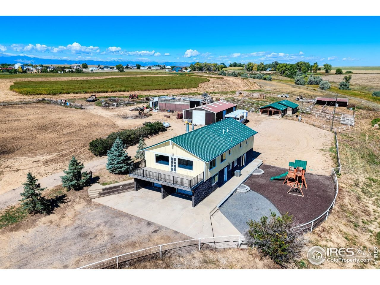 Rare offering of a Gentleman's Ranch! The 12.2 acres of the Ranch has fantastic views of the Rocky Mountains, with a rural ranch setting. The 3400 + sq ft home is newly remodeled and inside and out, including all new windows and doors. The home has 4 bedrooms plus, 1 office/bedroom and 3 bathrooms and an attached oversized two car garage. Outbuildings include a 6-stall barn with outdoor runs, a 30' x 40' loafing shed with runs, a 32' x 62' insulated shop building with 3 overhead doors, full electrical and concrete floor. There is also a fully enclosed 26' x 38' greenhouse with raised beds for year-round gardening. Large enclosed and protected chicken coup, including overhead netting. Numerous other small out buildings and pipe fencing round out the acreage. There is plenty of pasture for your horses and an outdoor arena set up with crowding alley and stripping shoot for ropers in place.