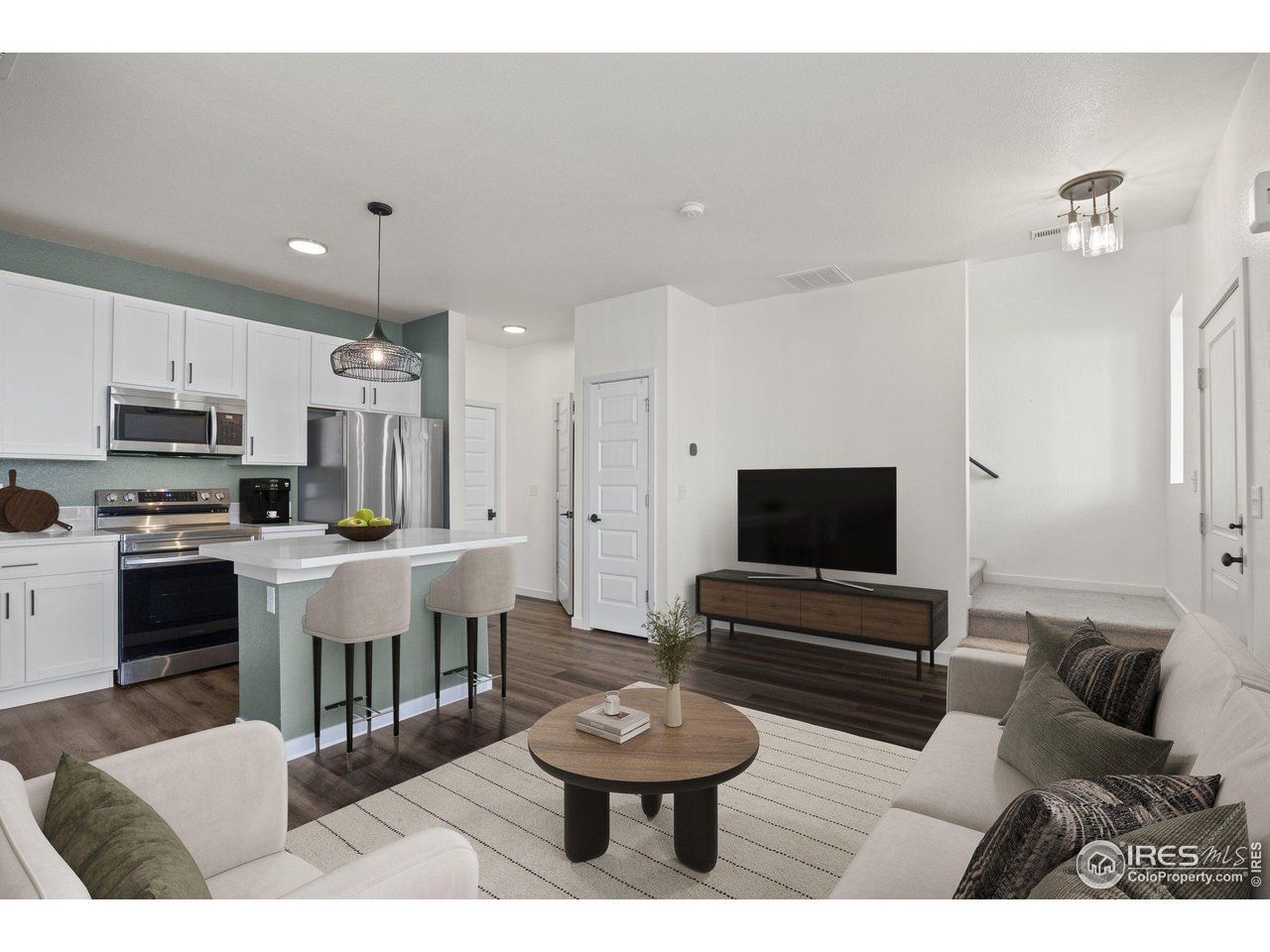 Welcome to this beautifully maintained townhome in the Conestoga neighborhood of Ault, offering the ease of newer construction with thoughtful upgrades already in place. Built in 2022, this 2-bedroom, 3-bath home features a smart, functional layout with both bedrooms offering private ensuite bathrooms for added comfort and privacy.The heart of the home is the stylish, modern kitchen, complemented by an island, updated fixtures, hardware, and fresh touches of paint that elevate the space beyond builder standard-truly better than new. An extra-wide staircase adds both convenience and a sense of openness, while the upstairs laundry, ideally located near the bedrooms, makes everyday living easy. Out front, enjoy a private, fenced courtyard-perfect for morning coffee, a bit of outdoor space for pets, or a welcoming entry that adds both charm and functionality. The heated, fully finished and drywalled 2-car garage is ideal for Colorado winters and extra storage. With low-maintenance living, quality finishes, and a move-in-ready feel, this townhome is an excellent opportunity in a growing community. Comfort, convenience, and modern design come together here-don't miss your chance to call this one home.