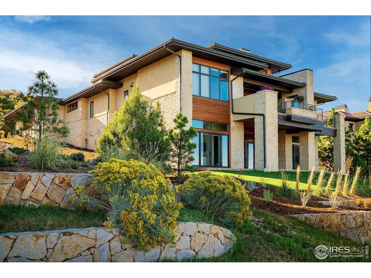 Privately elevated above the 12th and 15th fairways of the award-winning Ravenna Golf Club, this contemporary ranch estate commands an irreplaceable panorama of emerald greens undulating toward sparkling ponds, framed by dramatic red-rock formations and the Front Range beyond. Behind Ravenna's gates lies an elevated lifestyle of wellness, social connection and refined luxury where fine dining, fitness and nature exist in perfect harmony. An architectural statement, the modern facade fuses smooth stucco planes, limestone accents and linear rooflines for a composition both contemporary and timeless. Inside, white oak floors lead through voluminous sun-filled spaces where light and clean lines converge in sophisticated balance. The great room rises twenty feet beneath beamed ceilings and clerestory windows anchored by a sleek fireplace and wall of glass opening to a vast terrace overlooking the golf course and mountains. The kitchen presents as a culinary studio blending an ethereal palette with design precision, featuring a floating white-oak drop ceiling, eleven-foot quartz island, a suite of professional-grade appliances and a wet bar seamlessly connecting to the great room for effortless entertaining. The dining area, office and dramatic powder bath each continue the theme of artistry and polish. The primary suite is a sanctuary of calm with terrace access and breathtaking views, complemented by a spa bath with freestanding tub, poured-concrete vanities and boutique-style dressing closet. A statement staircase guides to the walk out lower level-a world of leisure with a billiards and media lounge, flagstone fireplace and a luminous back-lit quartzite bar with an impressive wine column. Three bedroom suites and a rejuvenating dry sauna room complete the level. Outside, over $100,000 in new landscaping introduces a lush lawn, cascading terraced gardens and a full-length patio offering multiple destinations for gathering and savoring the home's spectacular setting.