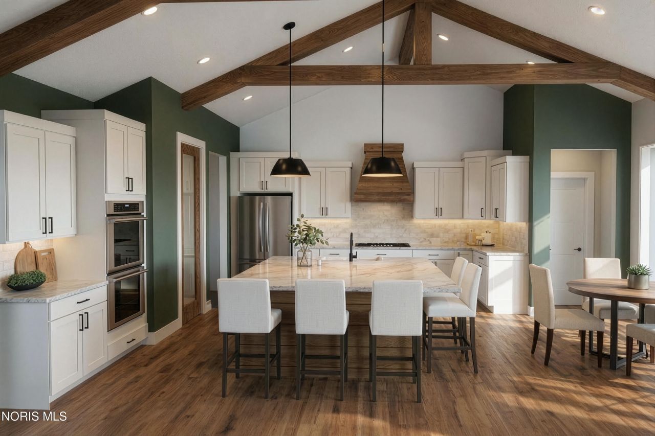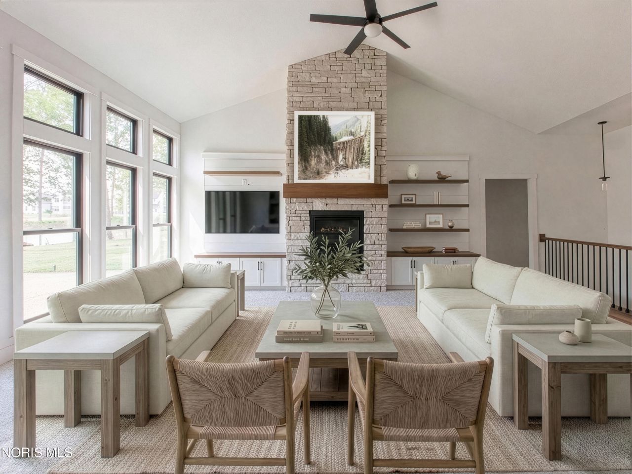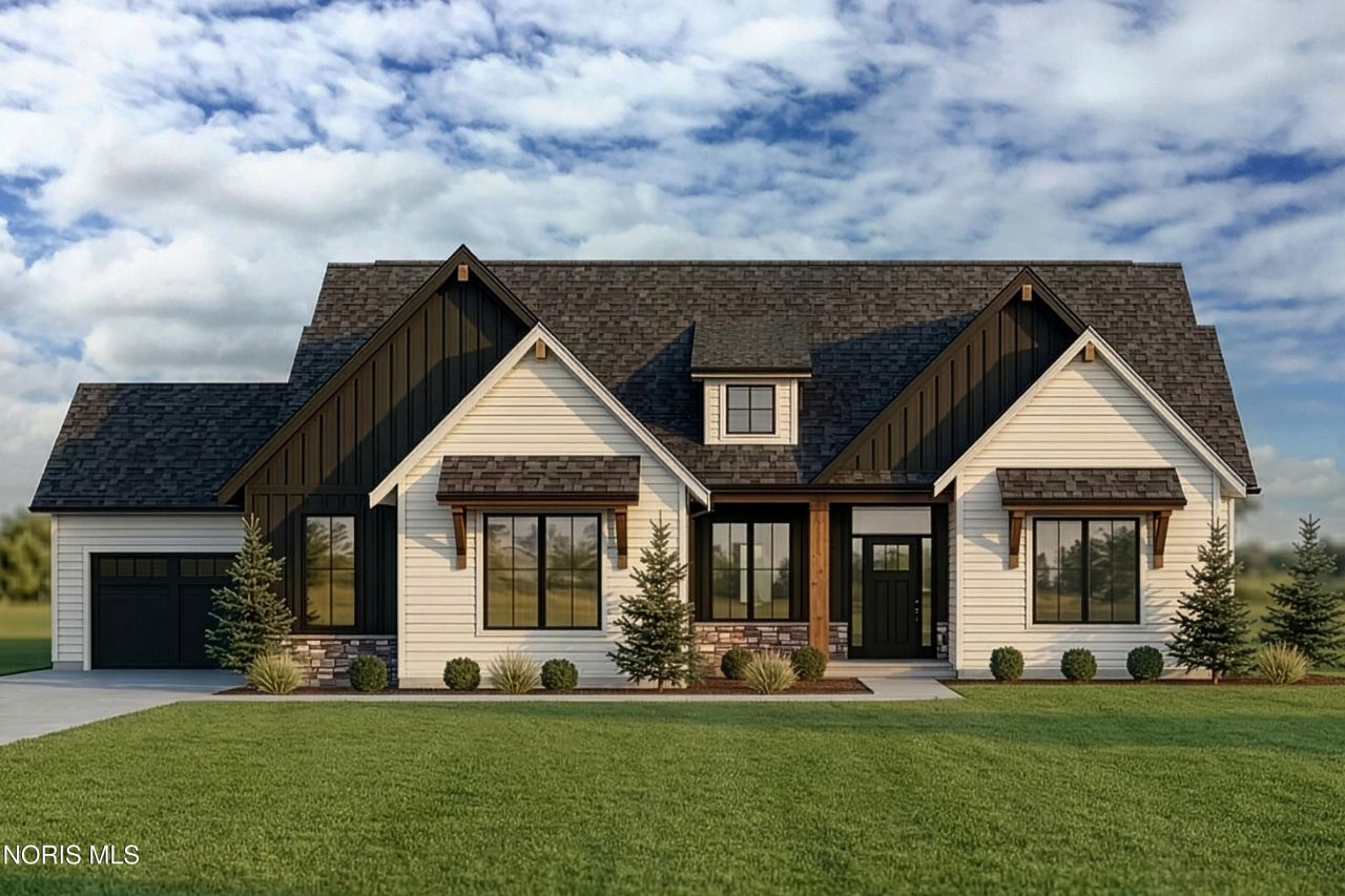 This home was designed, interior-designed, and built by award-winning and high-end custom builder, Homes by Josh Doyle. This new construction custom home offers the highest level of structural quality and energy efficiency. Features include ½ closed cell spray foam exterior walls with fiberglass batt insulation & R-50 ceiling insulation (perfect for rising energy costs!), 4000 PSI concrete w/ fiber mesh foundation walls, premium-grade studs and OSB, and top-tier basement drainage and waterproofing systems. This quality is un-matched in the industry for spec homes. The layout is a perfected 'master class' custom home design specifically for this lot. NOT COOKIE CUTTER. Learn more about the quality on the How We Build page of their website. Contact directly to do a 3D walk-through of the home to visualize interior finishes and layout in a virtual meeting or in-person at HQ in Whitehouse, Ohio. Location / Lot This residence is situated ON A WATER LOT in the highly sought-after Hidden Hollow section of Crimson Hollow Subdivision in Monclova, OH. Homes by Josh Doyle has been designing and constructing distinctive custom homes in this premier community for 10 years, with only a few lots left! Layout This spectacular 'split' ranch-style home features an incredible 2,572 square foot single-floor layout. The open-concept design flows seamlessly from the chef's kitchen to an eat-in dining with a stunning great room and a bright sunroom, both featuring cathedral ceilings. A private den is elegantly accessed by glass double doors right off the entryway. The primary suite is a true retreat with a massive walk-in closet that leads into the laundry room, a custom tile shower, a double sink vanity, and a luxurious freestanding soaking tub. The home also features 2 additional bedrooms with their own separate and private hallway, connected bath has double sink vanities & private tub/shower/toilet room. The everyday entrance from the oversized 3-car garage leads into a dedicated mudroom with custom built-in lockers, a closet and entrance to the separate laundry room. Finishes EXTERIOR: This home offers incredible curb appeal with striking black windows, an elegant black front door, and sleek long-panel black garage doors. Beautiful painted siding with crisp board-and-batten details is perfectly highlighted by gorgeous stone accents along the base. Custom stained cedar touches, including the inviting front porch columns and beautiful decorative wood accents, give the outside a true high-end feel. INTERIOR: Inside, beautiful ceiling trusses in the great room & kitchen show how truly custom this interior is. A breathtaking kitchen awaits with gleaming quartz countertops, a custom stained wood hood, a beautiful tiled backsplash, and a frosted glass door leading to a walk-in pantry. a massive floor-to-ceiling stone fireplace in the great room (with built-ins on both sides) and a cozy stone and shiplap fireplace in the sunroom. Extra-wide plank floors flow
