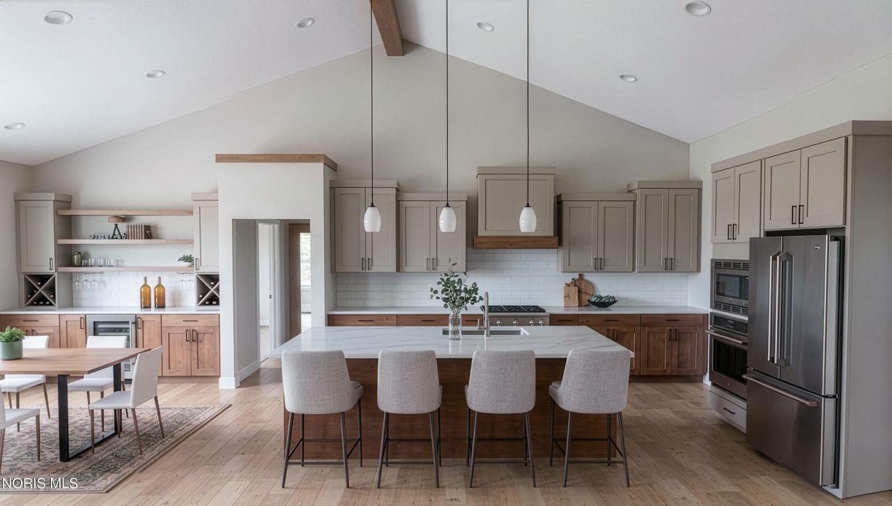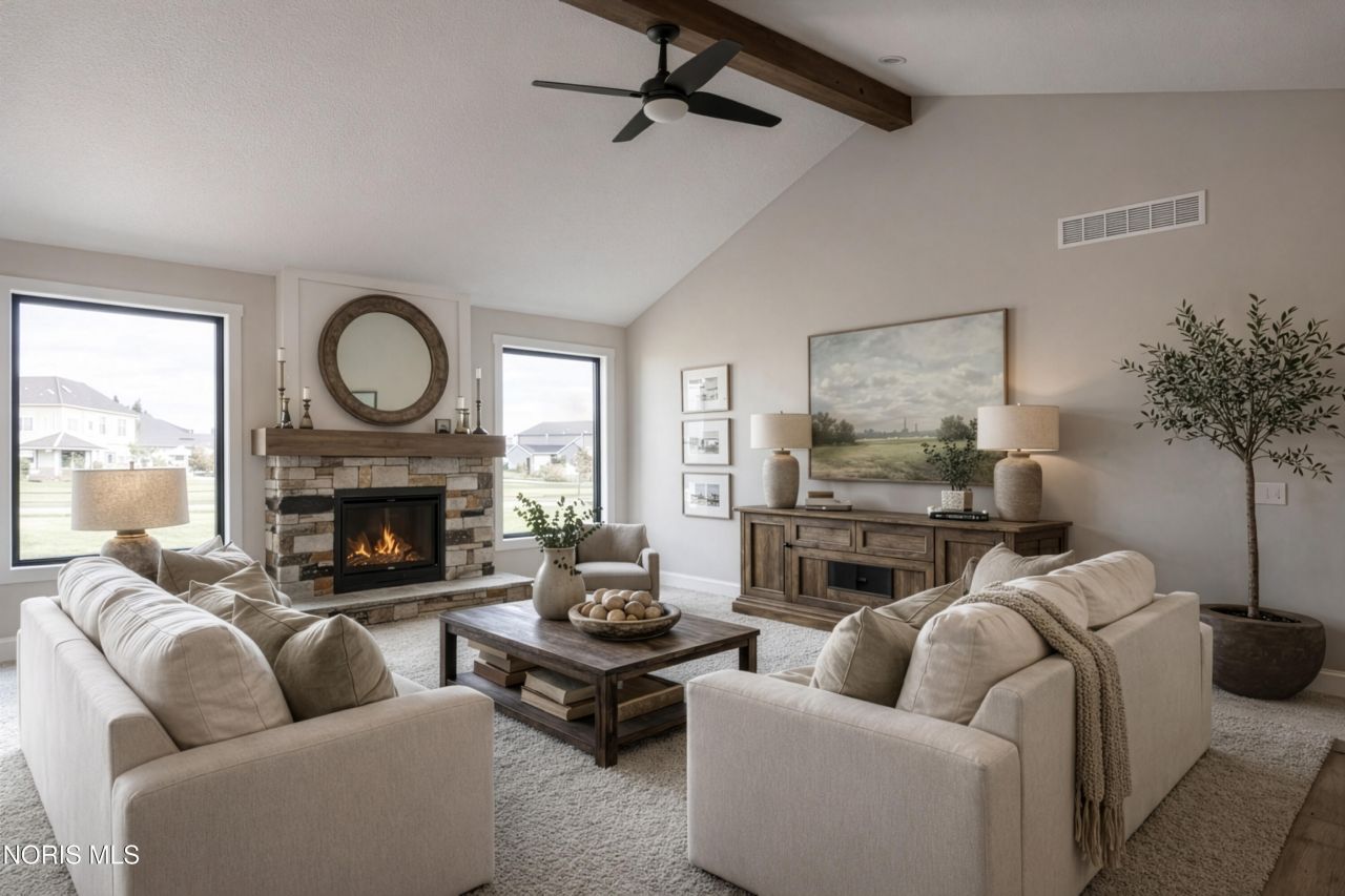 This home was designed, interior-designed, and built by award-winning and high-end custom builder, Homes by Josh Doyle. This new construction custom home offers the highest level of structural quality and energy efficiency. Features include ½ closed cell spray foam exterior walls with fiberglass batt insulation & R-50 ceiling insulation (perfect for rising energy costs!), 4000 PSI concrete w/ fiber mesh foundation walls, premium-grade studs and OSB, and top-tier basement drainage and waterproofing systems. This quality is un-matched in the industry for spec homes. The layout is a perfected 'master class' custom home design specifically for this lot. NOT COOKIE CUTTER. Learn more about the quality on the How We Build page of their website. Contact directly to do a 3D walk-through of the home to visualize interior finishes and layout in a virtual meeting or in-person at HQ in Whitehouse, Ohio. Location / Lot This residence is situated ON A WATER LOT in the highly sought-after Hidden Hollow section of Crimson Hollow Subdivision in Monclova, OH. Homes by Josh Doyle has been designing and constructing distinctive custom homes in this premier community for 10 years, with only a few lots left! Layout: This spectacular 2,597-square-foot single-floor home offers an incredible open-concept floor plan designed for effortless living and entertaining. Right off the welcoming entryway, you will find a private den accessed by elegant stained double doors. The heart of the home features a spacious kitchen that flows directly into a stunning great room and accompanied by a bright sunroom. The primary suite is tucked away for privacy on one side of the home, featuring a large walk-in closet and a master bathroom designed for ultimate relaxation. On the opposite side of the home, two additional bedrooms are perfectly situated near a convenient full guest bathroom. Completing the layout is a dedicated mudroom and a laundry room located just off the everyday entrance from the oversized three-car garage. Exterior This home offers incredible curb appeal with striking black windows, an elegant front door, and crisp white long-panel garage doors. Beautiful fiber cement siding is perfectly highlighted by gorgeous stone wainscot and full stone accent sections across the front elevation. Custom cedar touches, including beautiful board-and-batten siding, front porch columns, and striking dark-painted trim, give the exterior a truly bespoke, high-end Craftsman feel. Interior: The interior finishes are nothing short of breathtaking! The kitchen showcases gorgeous two-tone cabinetry and a walk-in pantry. Gleaming quartz countertops, sleek matte black hardware, and a custom wood hood with a stained accent beam complete this spacious area. The great room and kitchen feel massive thanks to soaring cathedral ceilings highlighted by custom stained wood beams. The great room centers around a spectacular gas fireplace accented with stone and custom shiplap. Premium plank f