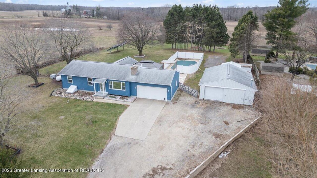 Fantastically maintained ranch home situated on 2 scenic acres in Mason. The main level features 3 bedrooms and 1.5 baths, living room, a newer kitchen with all appliances included, a dedicated dining space, and a spacious great room filled with abundant natural light. The partially finished lower level expands your living options with space currently utilized as a fourth bedroom, a family room, a second full bath, and ample storage. Laundry hookups are conveniently located on both levels for added flexibility. Outdoor amenities make this property truly stand out, including a gazebo and cook out area, 16x32 chlorine, heated pool with an 8-foot deep end, perfect for summer enjoyment. The property also features a pole barn with partial heating (torpedo heater), motorhome hookup and parking, and a whole-home generator for peace of mind. Recent updates include siding, deck, barn door, epoxy-coated garage floor, and privacy window tinting that allows you to see out while limiting visibility in. This well-cared-for property offers space, versatility, and modern updates, all in a peaceful country setting.